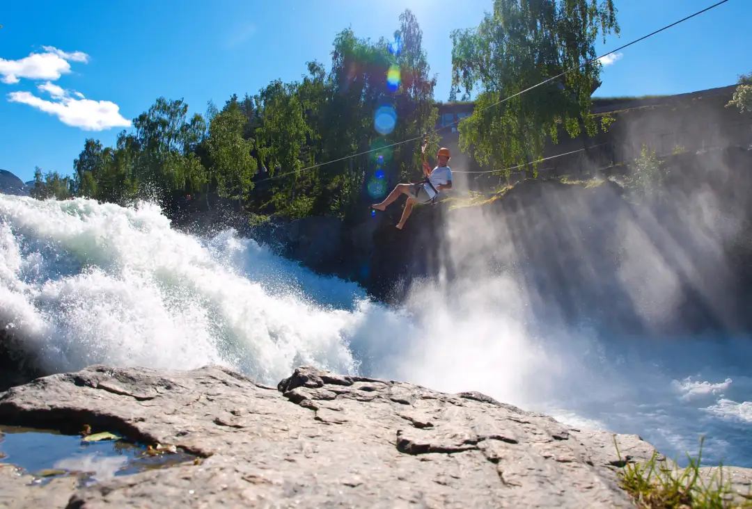 • Prestfosstraversen zipline: Om lag 200 meter zipline over brusande Prestfossen – midt i Lom sentrum. Drop-in i sesong, med oppmøte ved Norsk Fjellsenter.