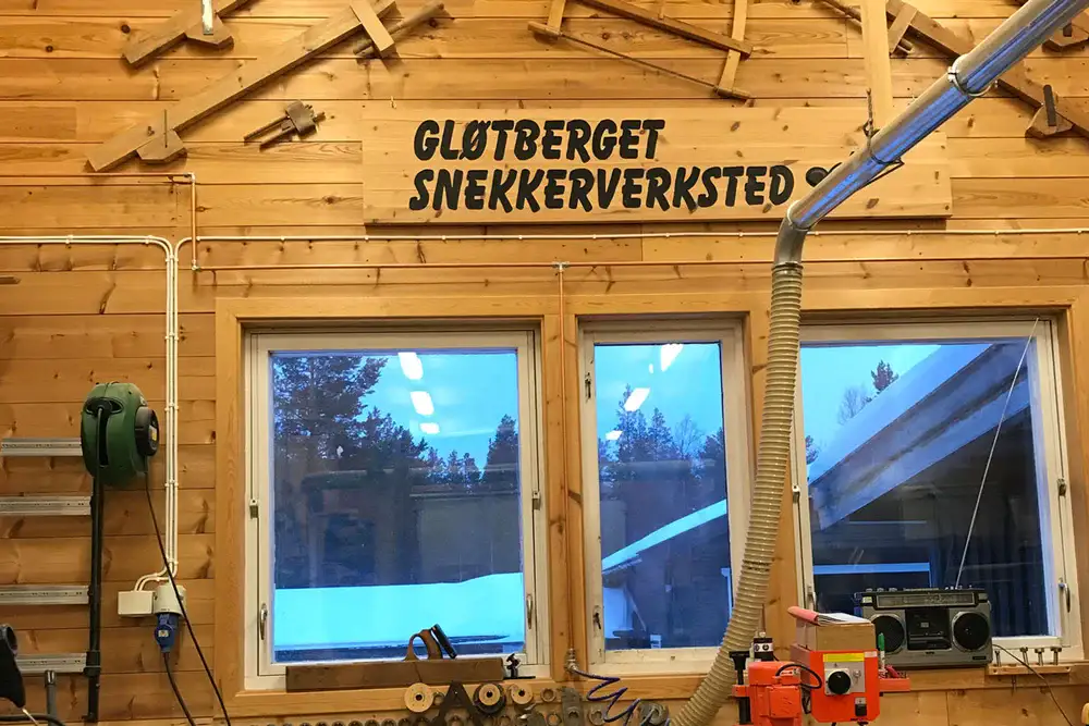 Gløtberget er ikke bare hytteutleie. Her finnes også et eget snekkerverksted, der det jobbes med alt fra møbler og innredning til spesialprosjekter – både nytt og restaurering. For mange er det litt ekstra sjarmerende å bo et sted der vertskapet også skaper, bygger og tar vare på detaljer.