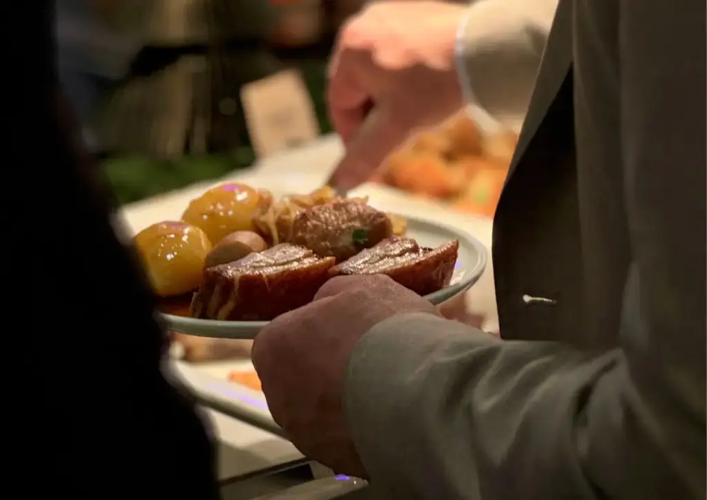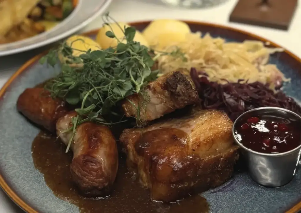 Til konsertkvelden med Vår Jul har hotellet komponert en egen 2-retters showmeny som vil være tilgjengelig i hotellets restaurant, The Social Bar & Bistro. Menyens hovedrett består av juletallerken med ribbe, medisterkake, julepølse, rødkål, surkål og tyttebær, mens desserten består av riskrem med bringebærsaus og krumkake. Pris 2-retters showmeny: kr 425 per person.